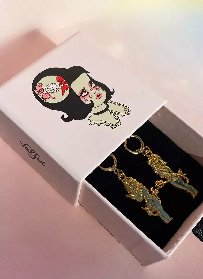 These earrings feature original Lucy & Cherub charms. Comes in a custom Valfré jewelry box, perfect for gifting.