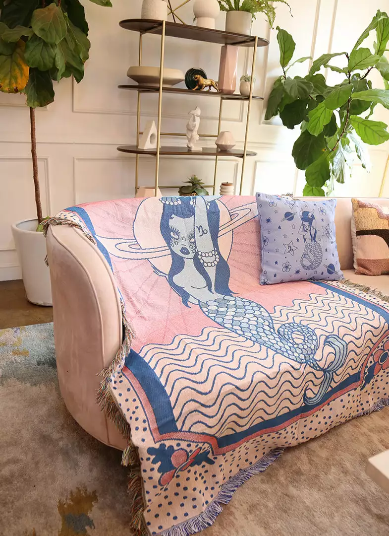 This blue woven pillow features original Valfré artwork. It comes stuffed, and is the perfect statement piece to spice up your home.