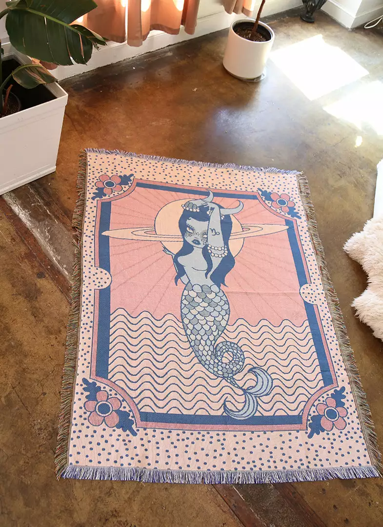 This large woven blanket features original Valfré Capricorn artwork. Drape it across your bed/couch, hang it in your living space, or bring it on a picnic.
