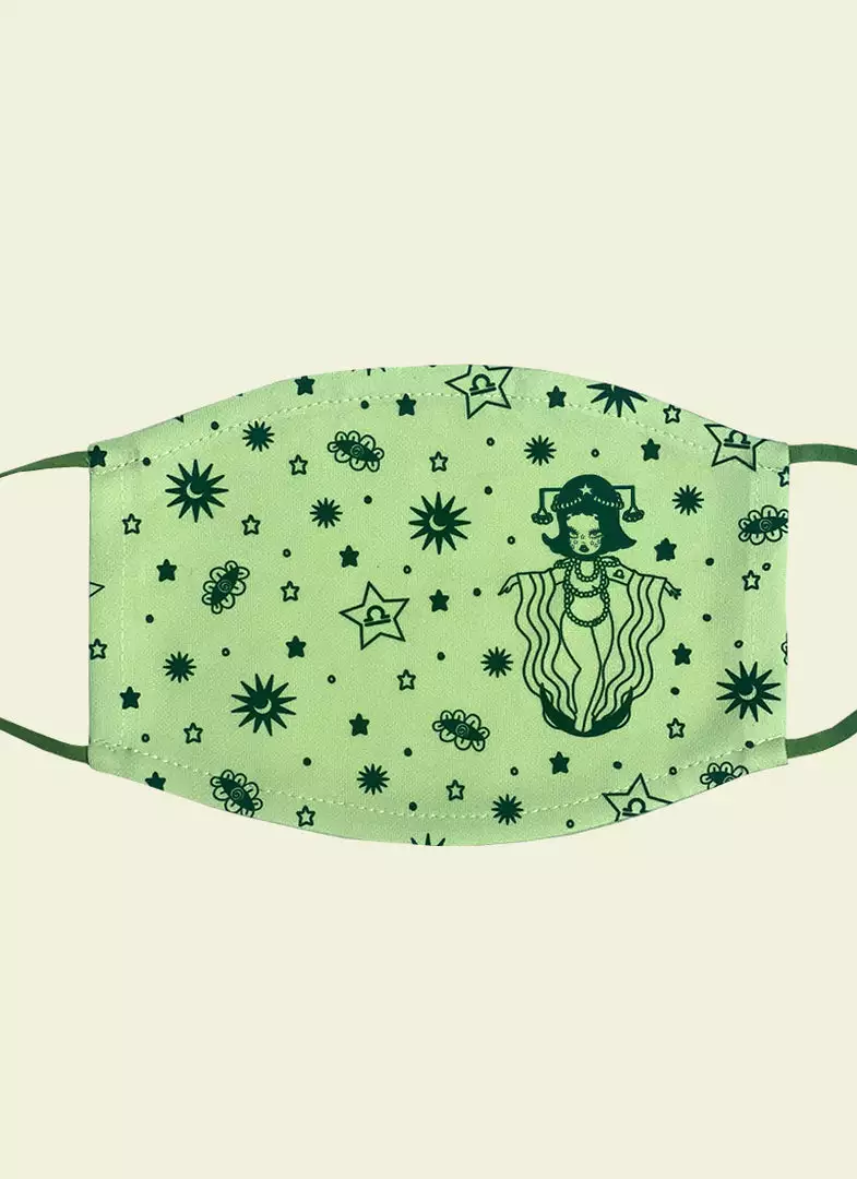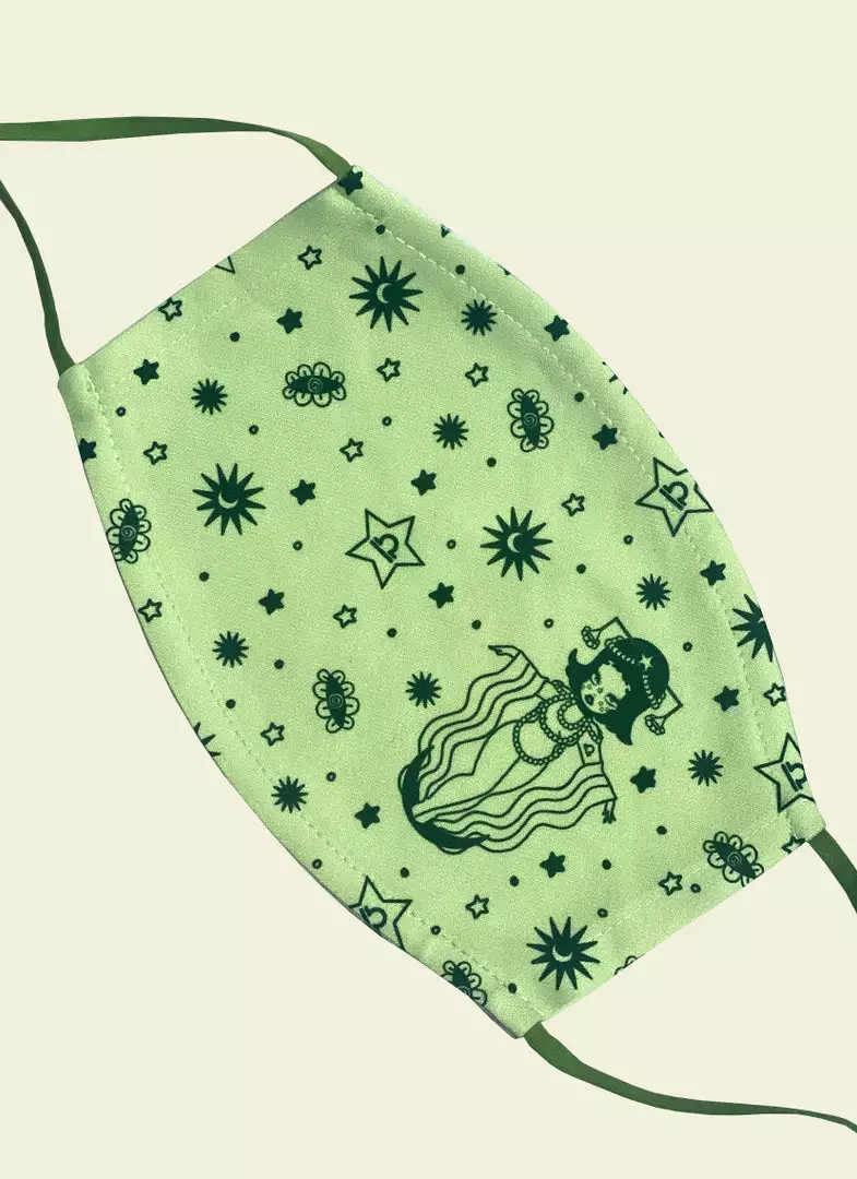 This soft face mask features original Valfré Zodiac artwork. Made of stretchy polyester material and features adjustable straps. One size fits most.