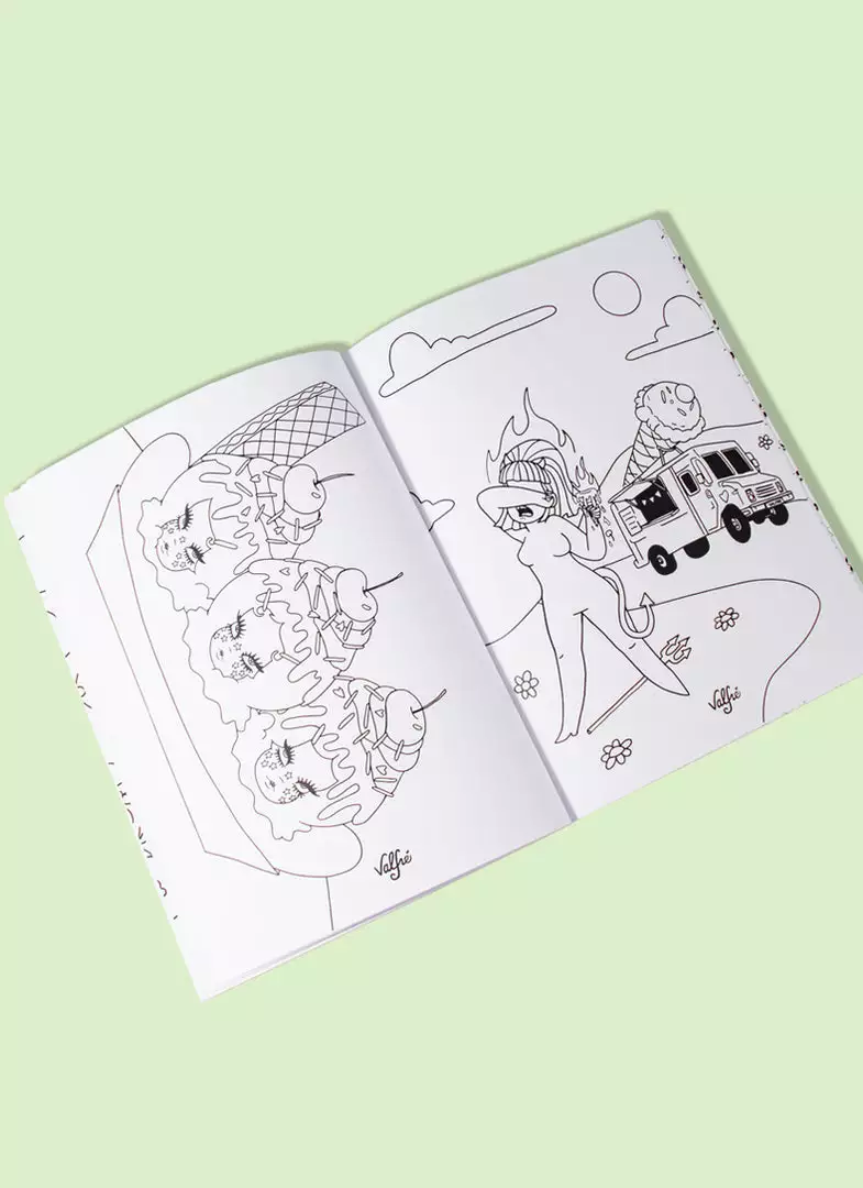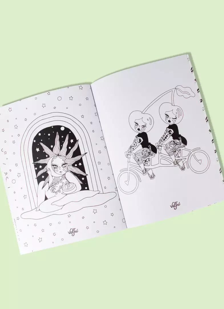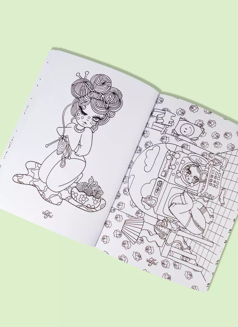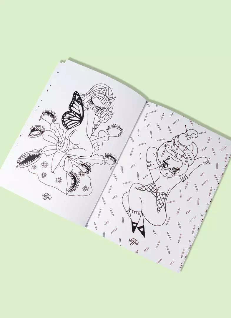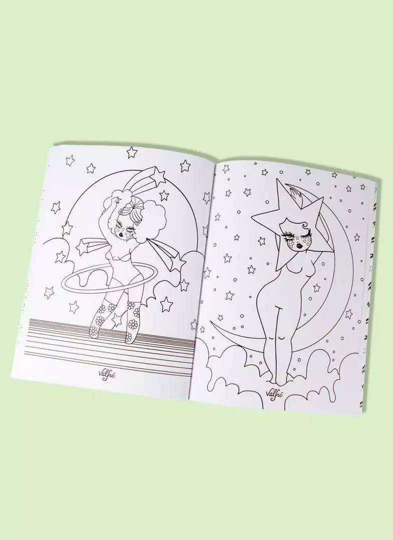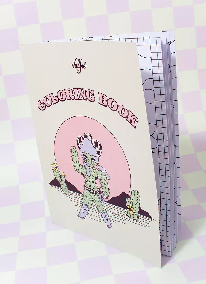 The ‘Color Me Valfre’ set is creative and fun, but the binding could be better. A spiral binding would make it easier to use.