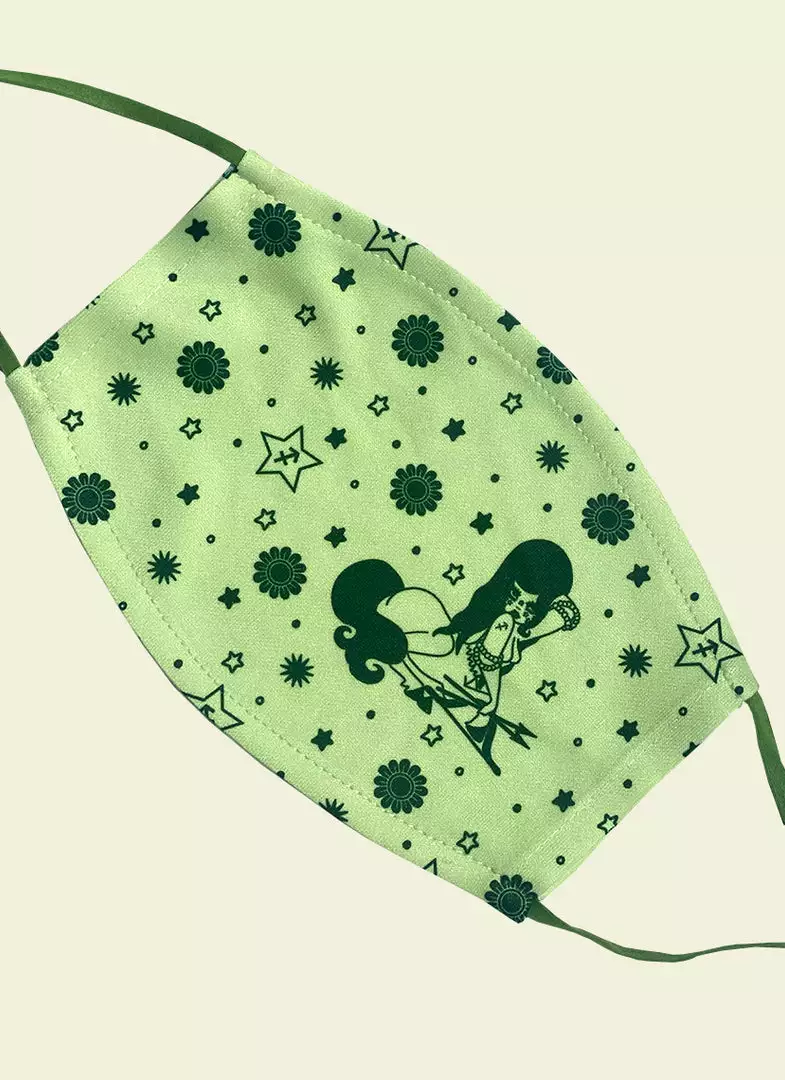 This soft face mask features original Valfré Zodiac artwork. Made of stretchy polyester material and features adjustable straps. One size fits most.