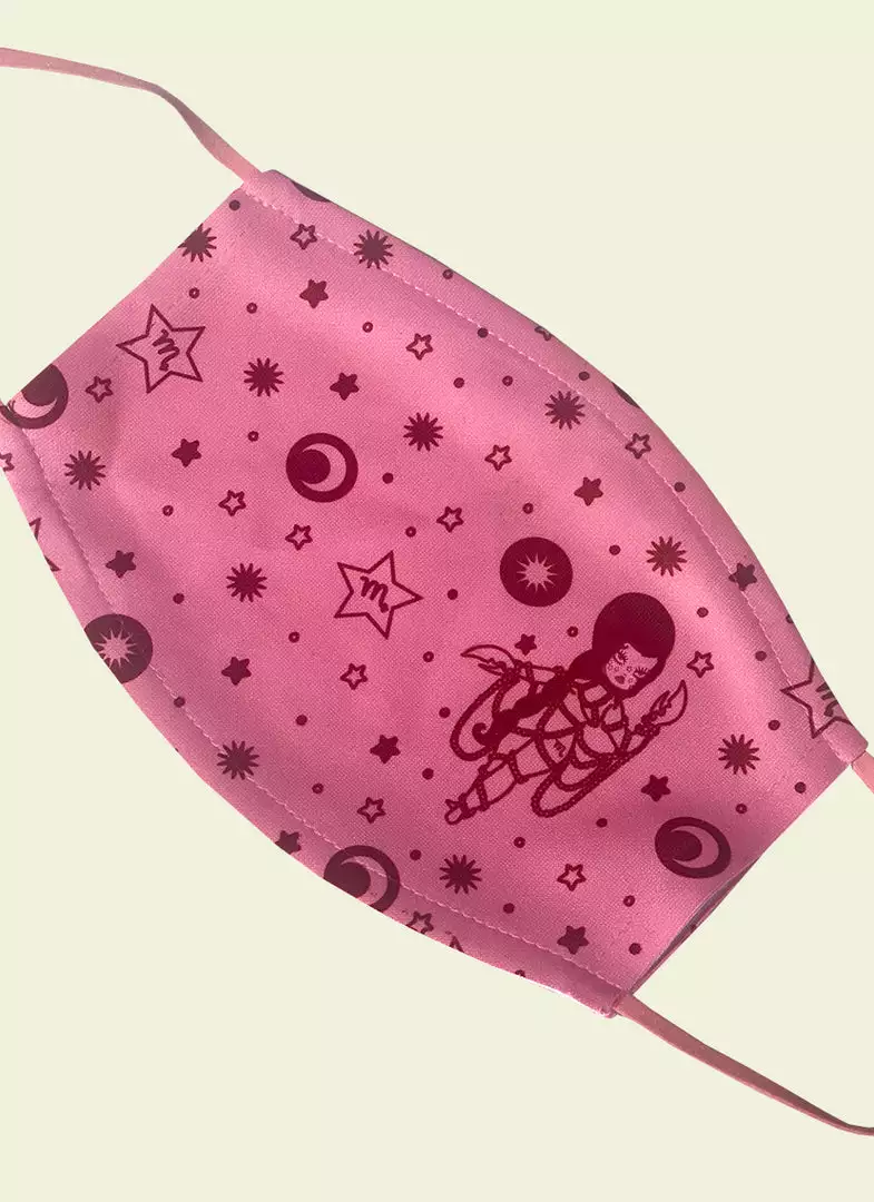 This soft face mask features original Valfré Zodiac artwork. Made of stretchy polyester material and features adjustable straps. One size fits most.