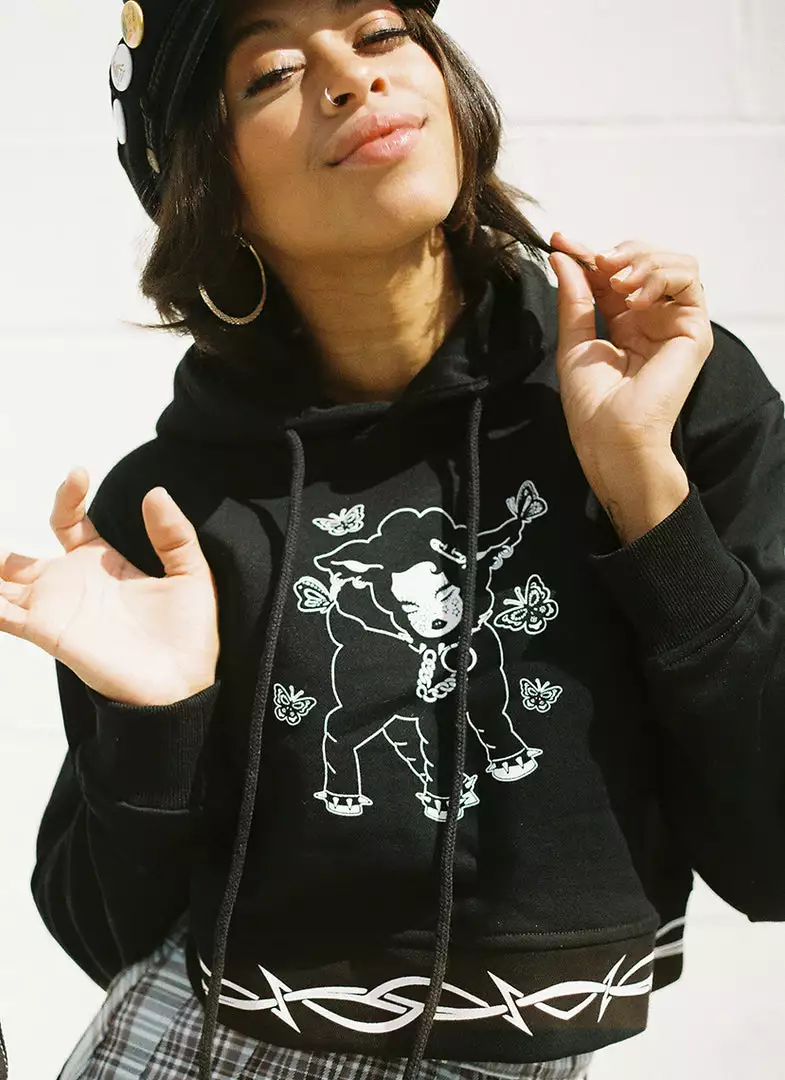 This super soft hoodie features original Valfré artwork, a cropped fit, fleece lining, and a drawstring hood.