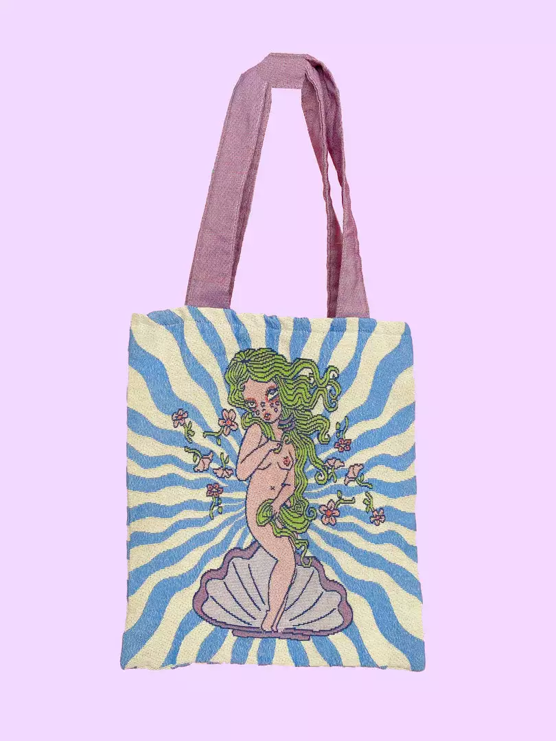 This woven tote bags features original Valfré Venus artwork. Bring it to the beach or shopping.